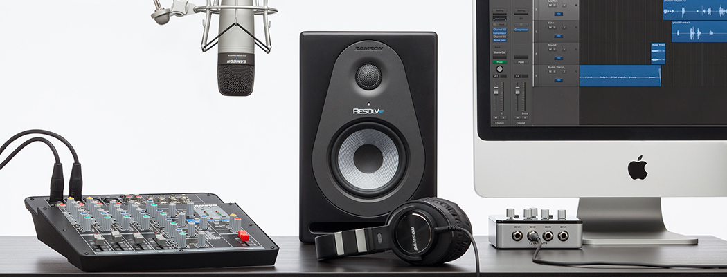If you’ve expanded your podcast setup to include a few microphones and an external mixer, it may be time to look into an enhanced monitoring system. Samson’s Resolv Series of active (powered) monitor speakers come in a couple unique models, each with an array of sizes to fit any studio. Of course, an ideal way to monitor is with everyone using headphones, that way the microphones are not picking up any sound from the monitor speakers; isolation and control are improved. The Samson QH4 is compact headphone amplifier that offers four channels of individual level and tone control, and can drive up to four sets of headphones. Read more about monitoring issues.
