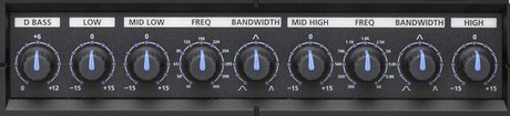 The Parametric EQ that appeared on bass amps was akin to a “live use” version of the type of EQ that first saw the light of day on a recording studio console or high-end mixing board. Unlike a graphic EQ offering many equal bands, the parametric EQ offers the ability to divide the audio spectrum into a few custom configured bands. Controls allow the user to set the Center Frequency of the band, the Width of the band (how broad a group of frequencies the band encompasses), and the amount of boost or cut applied to that band. Parametric EQs proved invaluable to the bass player creating a custom bi-amped stage rig, matching the pickup tone to the preamp, to the crossover points and to the speaker selection, as well as providing finely-tuned creative control for sonic exploration.