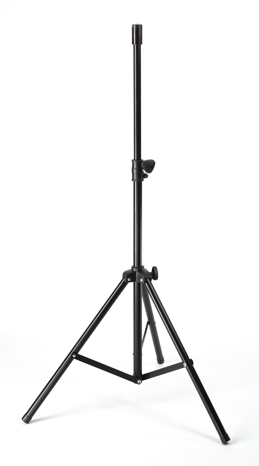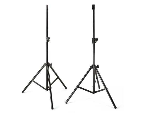 - Two lightweight, telescoping tripod speaker stands