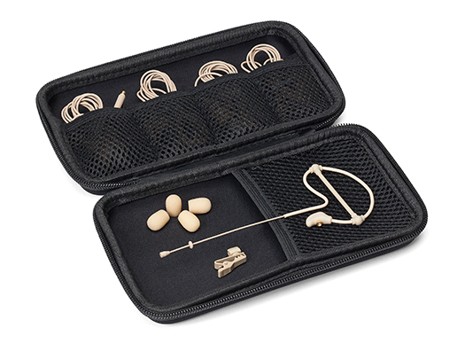 The SE10x is a complete earset microphone solution and comes housed in a protective carry case. In addition to the earset microphone and mic clip, the SE10x includes four foam windscreens to minimize breath and wind noise, and to increase vocal clarity and a clothing clip for securing the mic cable out of sight and out of the way.