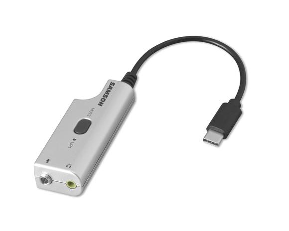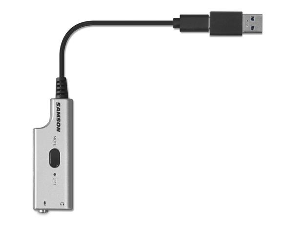 The UP1 is an analog-to-digital USB audio adapter with a 1/8” (3.5mm) microphone input and 1/8” (3.5mm) headphone output. It features a USB Type-C connector and includes a USB C to USB A adapter to connect to any computer.