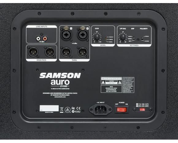 Samson's Auro D1500 Active Subwoofer provides powerful lows that let audiences not only hear, but "feel" the bass. The Auro D1500 packs an unbelievable 1,000 watts of heart-thumping power in a sleek, low profile enclosure that weighs just over 50 pounds, making it ideal for gigging musicians, mobile DJs and other general sound reinforcement applications. The Auro D1500 Active Subwoofer goes where low-end is a must.