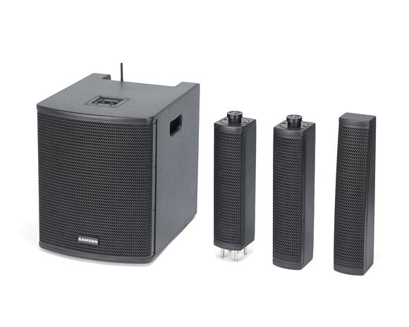 The Samson Resound VX8.1 is a portable column array system that delivers premium sound in a sleek, easy-to-transport package, perfect for mobile DJs, bands, singer-songwriters or anywhere high-quality sound reinforcement is needed. This active 700-watt system includes a 12" subwoofer with a 3-channel mixer and eight 3.5" drivers arranged in a vertical column array that provides 120°–200° of horizontal coverage.